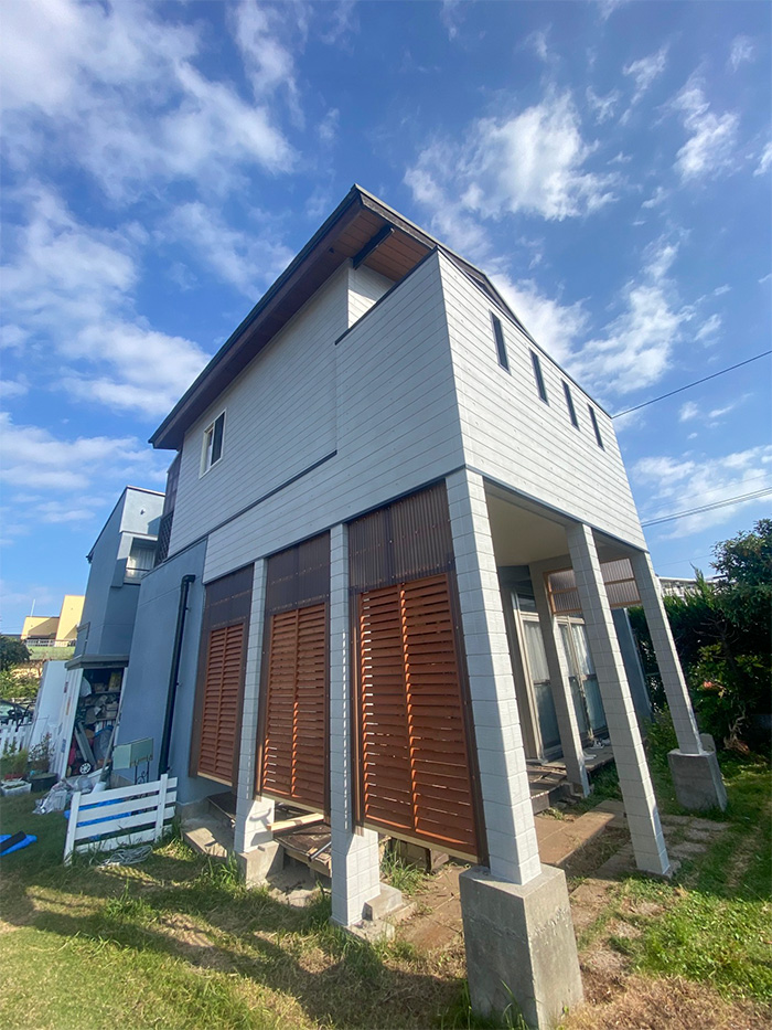 ご予算内で工事を行うため、既存の木造を残し、上からサイディングを張るプランをご提案しました。