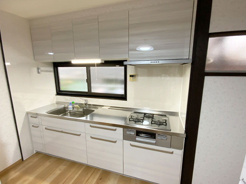 白を基調とした空間になり、とても明るく清潔感のあるキッチンになりました。